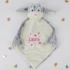 Personalisiertes Schmusetuch Hase grau mit individueller Bestickung.