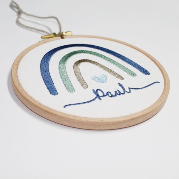 Stickrahmen Regenbogen Blau mit Namen